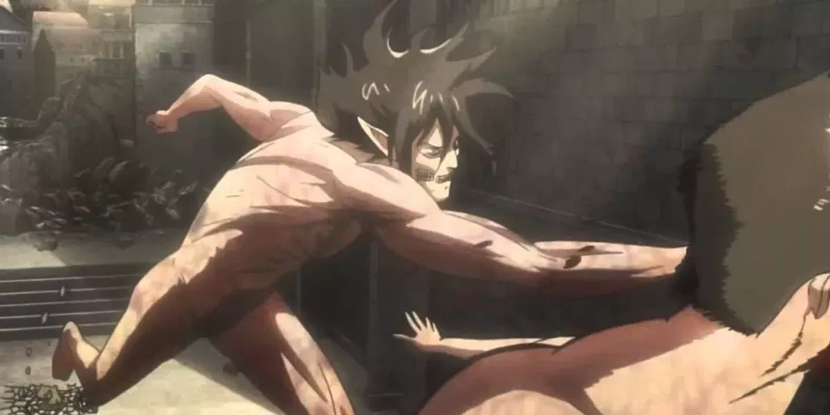 Cuando el Titán de Ataque de Eren se revela por primera vez, estalla de la boca del titán que se lo había comido y se lanza al ataque. Intenta matar a todos los titanes que se encuentran en su camino y acaba salvando a Mikasa en el proceso.