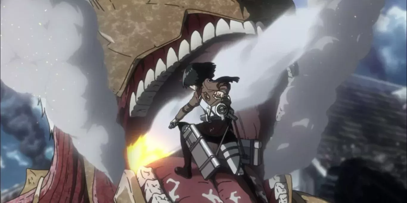 Mientras Eren y su ejército de titanes de la pared se acercaban a los últimos vestigios de la humanidad, Mikasa finalmente se armó de valor para hacer lo que consideraba necesario. Armin proporcionó una distracción ideal mientras ella creaba una abertura en su boca con una lanza de trueno.