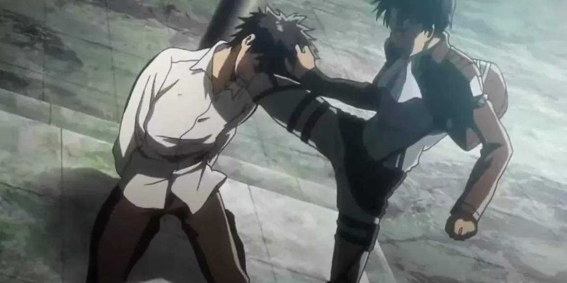 Durante el juicio de Eren, Levi necesitaba ilustrar que Eren podía ser controlado y utilizado para Paradis. Para ello, Levi comenzó a golpear brutalmente a Eren como una extraña prueba de contención.