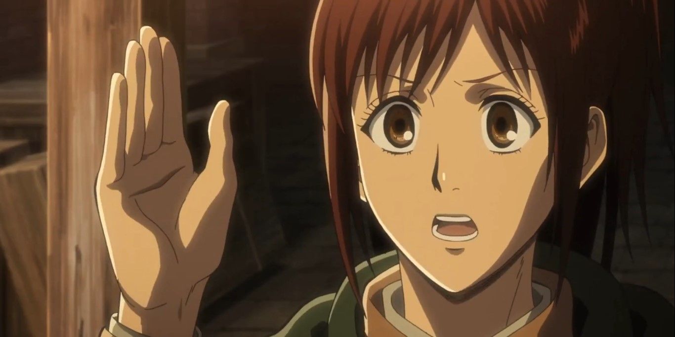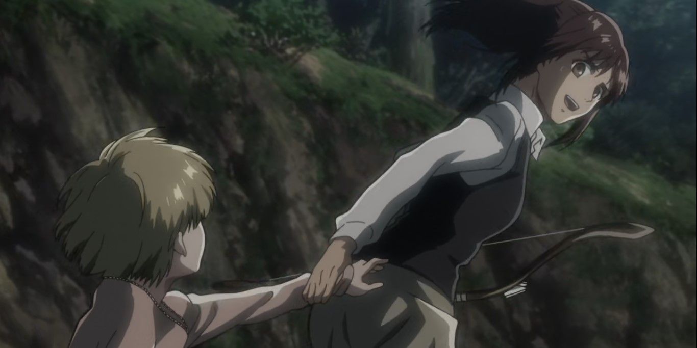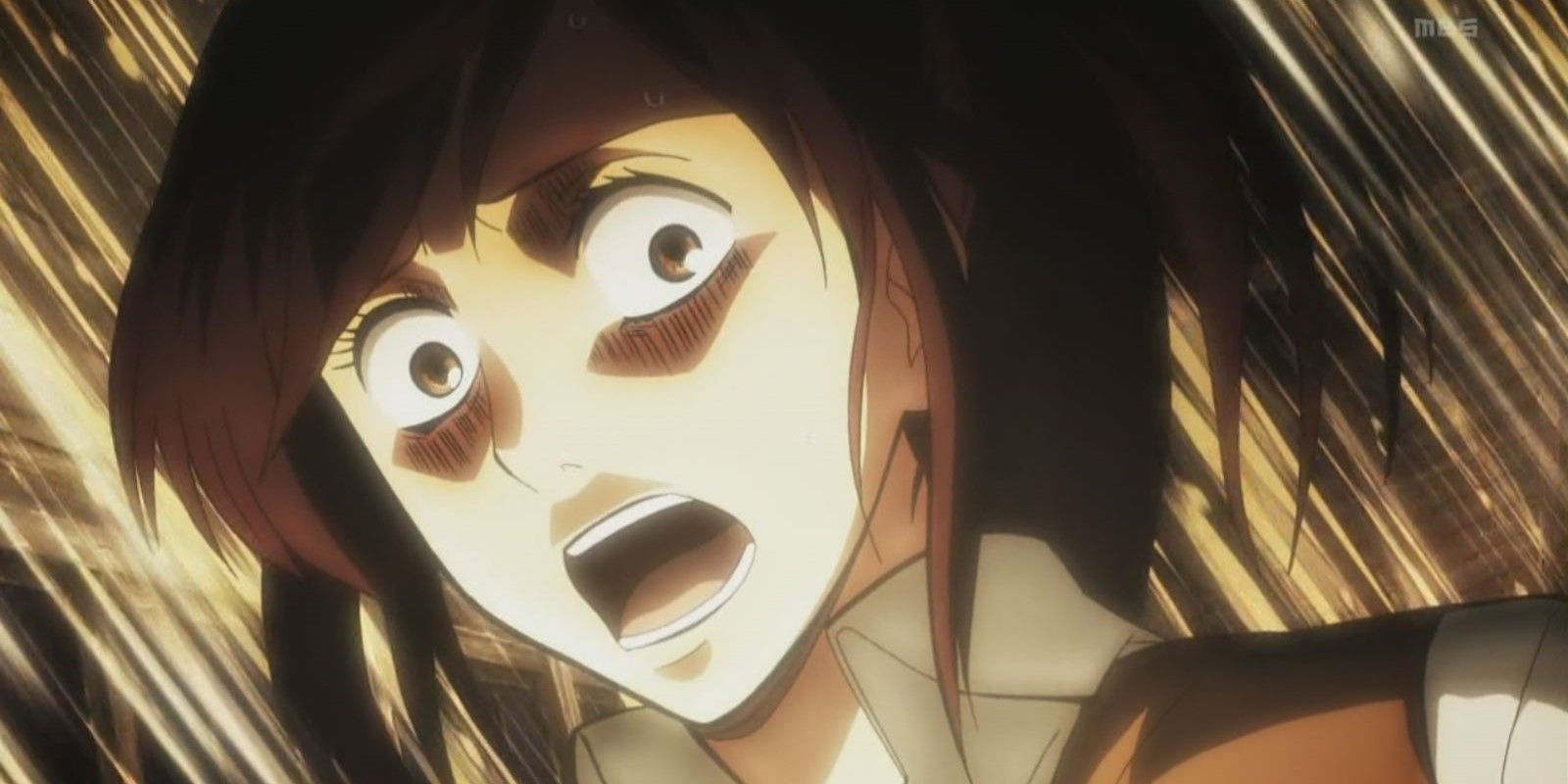 Sasha vino como un ángel pero falló en matar al Titán. Le dice esto a la chica y le pide que corra derecho porque los exploradores se tropezarán con ella y la rescatarán. Mientras tanto, Sasha se quedaría atrás para detener al Titán.