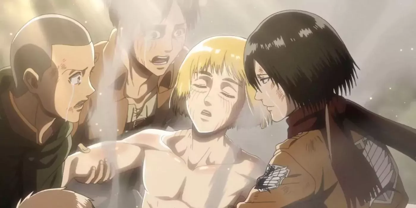 La tercera temporada muestra la batalla para retomar Wall Maria, y Armin y Erwin resultan gravemente heridos. La pareja está básicamente al borde de la muerte, pero Eren logra capturar a Bertholdt. Por desgracia, sólo pueden salvar a uno de ellos convirtiéndolo en un Titán Cambiante.