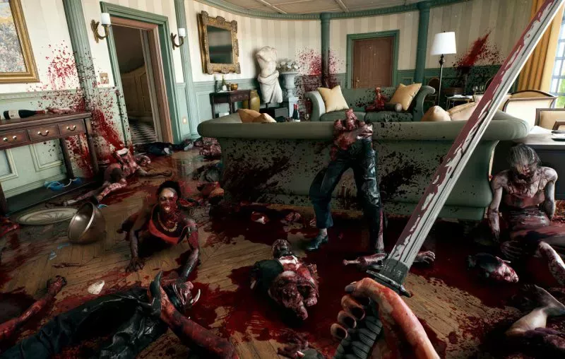 Juega un poco más y empezarás a ver más de las grandes características del juego. El daño ambiental no es una idea nueva, pero encender un generador portátil para cocinar una piscina llena de zombis o verter un círculo de aceite para crear una barrera de seguridad en llamas siempre será muy divertido, mientras que lanzar un barril lleno de agua a un enemigo tambaleante antes de golpearle en la cara con una batería de coche para un final electrizante, aunque no necesariamente realista, tiene algo de payasada. Más adelante, durante la práctica, te encontrarás con una piscina llena de ácido. Aunque definitivamente no querrás meterte en ella para nadar, hay un montón de enemigos a los que puedes lanzar a la piscina, y es una secuencia memorable y grotesca.