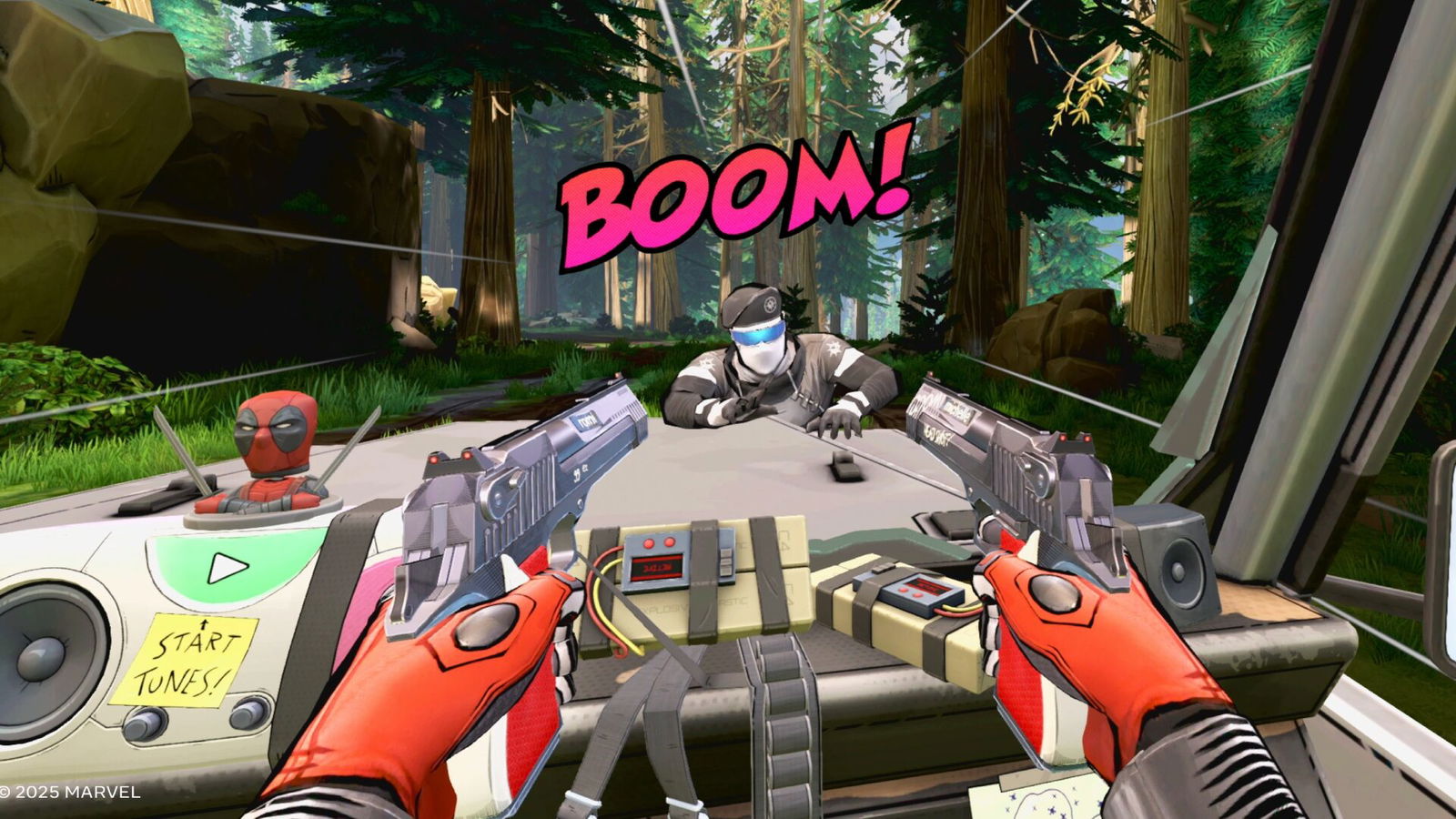 No sería Deadpool sin romper la cuarta pared, y Marvel’s Deadpool VR tiene mucho de eso. Él sabe que está en un juego, y Shield lo contrata para capturar un helicóptero, pero en su lugar, lo estrella, y el caos sigue. Mientras observaba, parecía que ningún jugador jugaba el juego de la misma manera, y el equipo de Twisted Pixel confirmó esto al explicar que querían que el juego se sintiera único para cada jugador. Por supuesto, tendrás acceso a las famosas armas y katanas de Deadpool, pero realmente querían llevar la absurdidad de Deadpool a la realidad virtual.