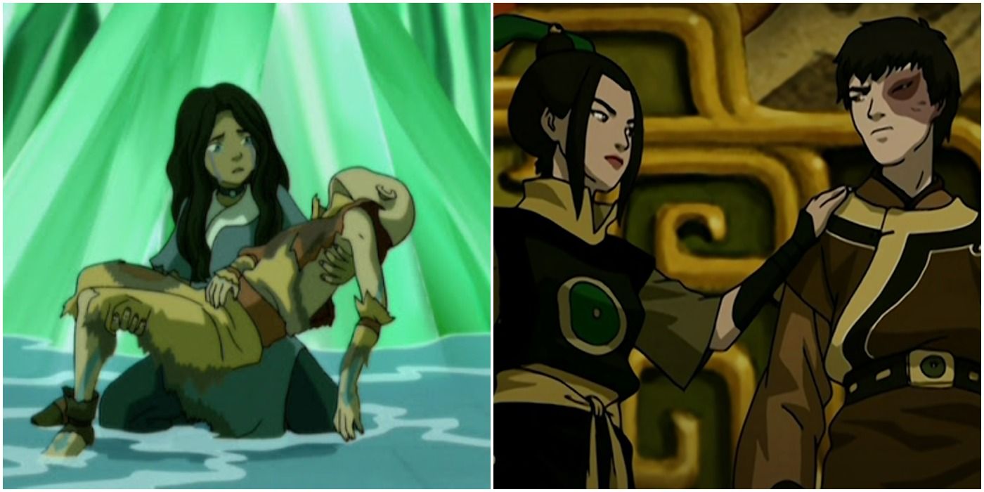 10 "La Tormenta""La Tormenta" fue el episodio que dejó claro que esta era una historia sobre Aang y Zuko. Lo hizo revelando las historias del Avatar y del Príncipe de la Nación del Fuego... ...cómo Aang terminó congelado por 100 años y cómo Zuko fue marcado y desterrado. A través de los flashbacks, los espectadores ven como después de que Aang se enteró que era el Avatar, fue alejado de sus amigos y a punto de ser enviado lejos de su figura paterna.