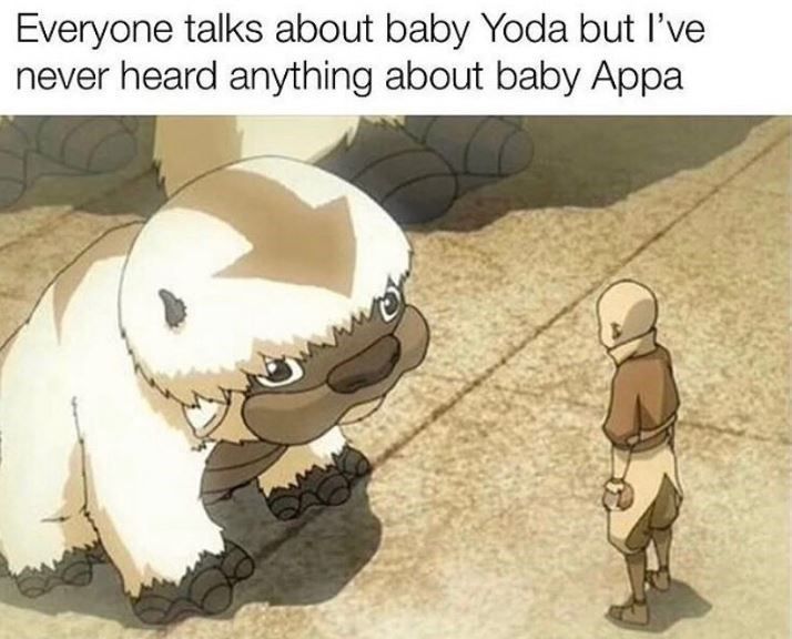 Appa se toma eso a pecho y le gruñe en respuesta. Apostamos a que Appa estaba pensando algo similar a sus pensamientos en el meme de arriba, durante ese tiempo.
