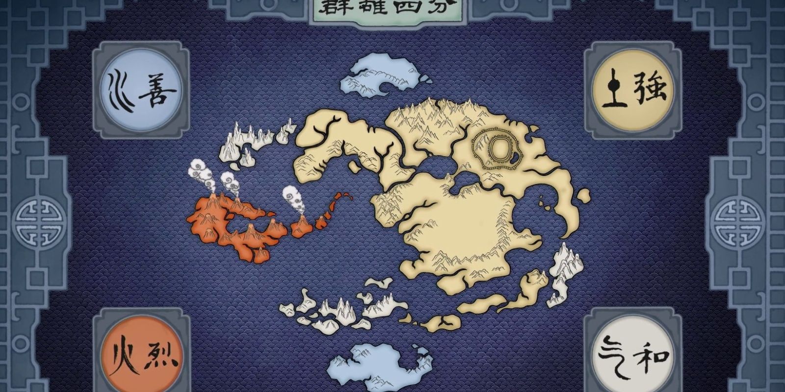 La Nación del Fuego en Avatar: El último maestro aire juega papeles antagónicos, aunque dos increíbles héroes la llamen su hogar. Consiste en una serie de grandes islas, siendo las más importantes Shuhon e Islas Capitales. Curiosamente, la economía de este país supera con creces la del Reino de la Tierra, aunque este último es considerablemente más grande en tamaño.