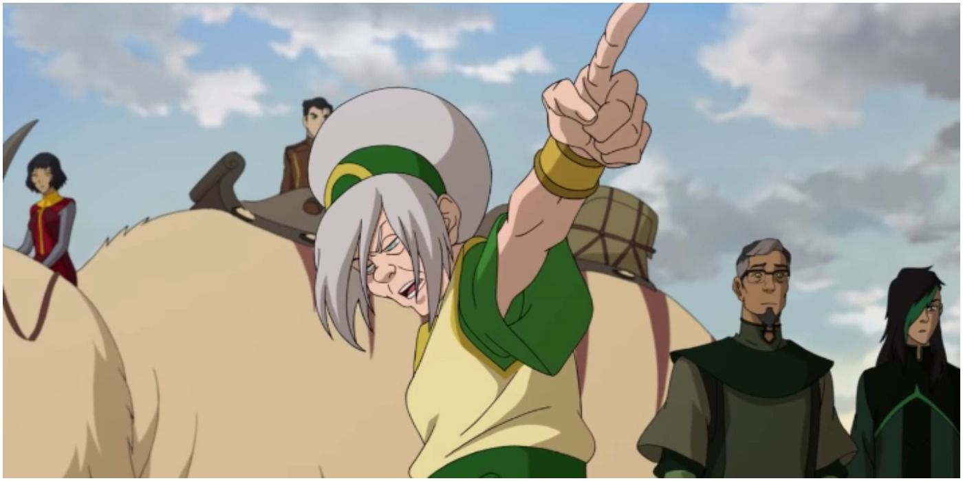 Por otra parte, el hecho de que ella libere a su hija menor de todo mal, bajo la mesa, es la prueba de que no ha cambiado tanto. Además, la abuela Toph y la niña Toph son básicamente la misma persona.