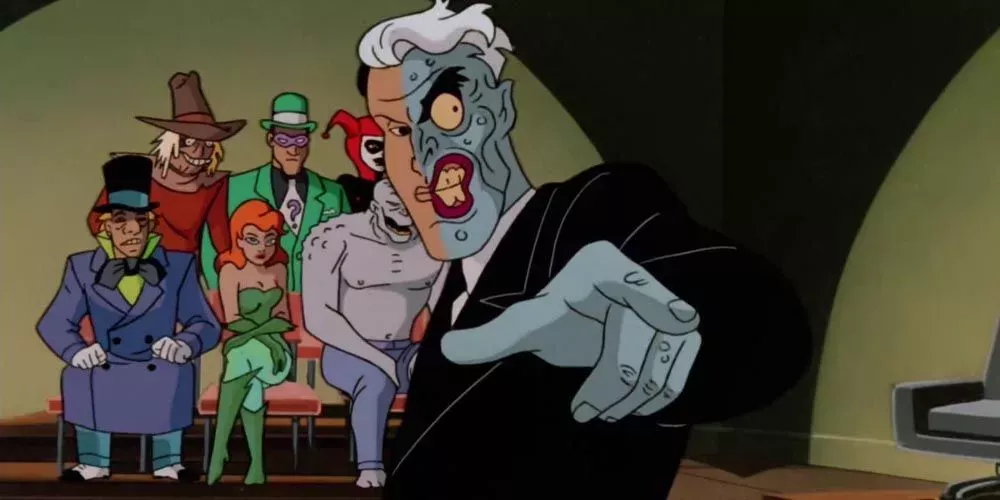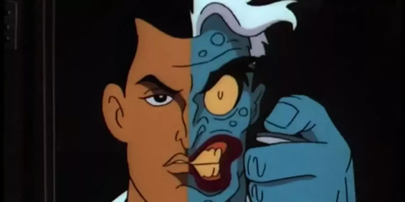 Los guionistas de Batman: The Animated Series añadieron profundidad a muchos personajes que antes eran bidimensionales. Dos Caras era un villano que tenía una fascinación por el número dos. Algunos cómics incluso lo presentaban con una doble personalidad.