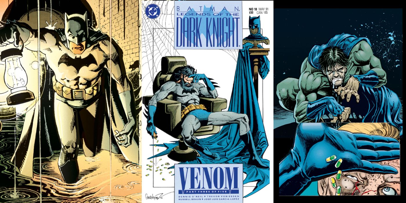 El arco argumental de Venom (números 16 a 20), escrito por Dennis O'Neil con arte de Trevor von Eeden, introdujo por primera vez Venom, la droga que aumenta la fuerza y que más tarde fue utilizada por Bane para doblegar a Batman. El Caballero Oscuro siempre ha encontrado la manera de salir adelante; sin embargo, el fracaso en la salvación de una joven ahogada hace que Batman busque aumentar su fuerza, lo que resulta químicamente en su adicción a Venom, con efectos devastadores.