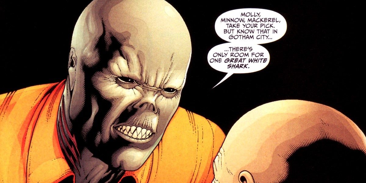 La mayoría de los fans de Batman probablemente no tienen ni idea de Warren White, alias Gran Tiburón Blanco, un psicópata con dientes afilados, sin labios, sin nariz y sin pelo. Es similar a Kingpin de Marvel, donde dirige un imperio criminal desde su propia celda en el Asilo Arkham.