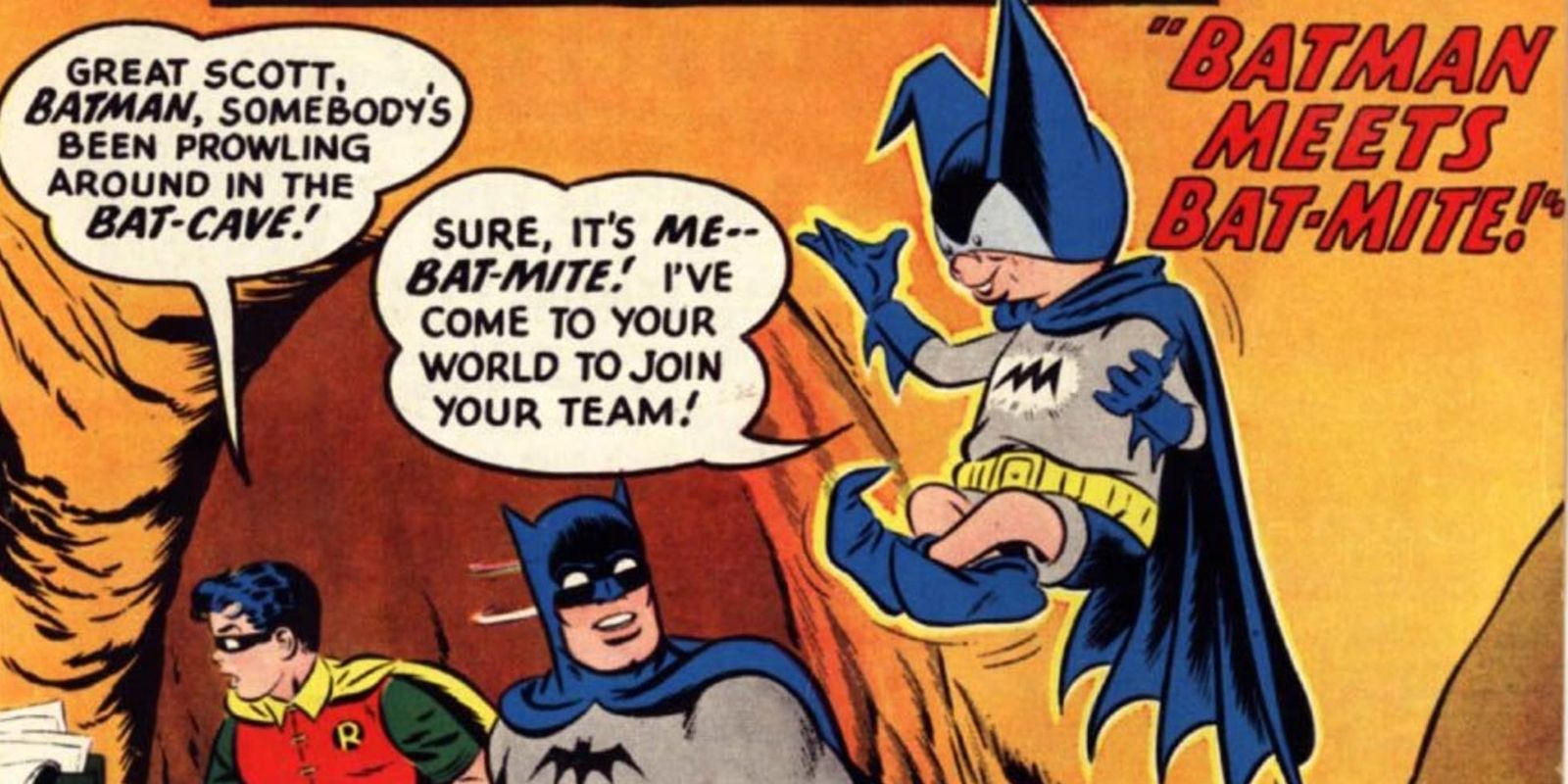 Bat-Mite debutó en Detective Comics#267 como un poderoso diablillo mágico de la 5ª dimensión, muy parecido al travieso villano de Superman, el Sr. Mxyzptlk, aunque Bat-Mite siempre fue más un fanático que un alborotador.