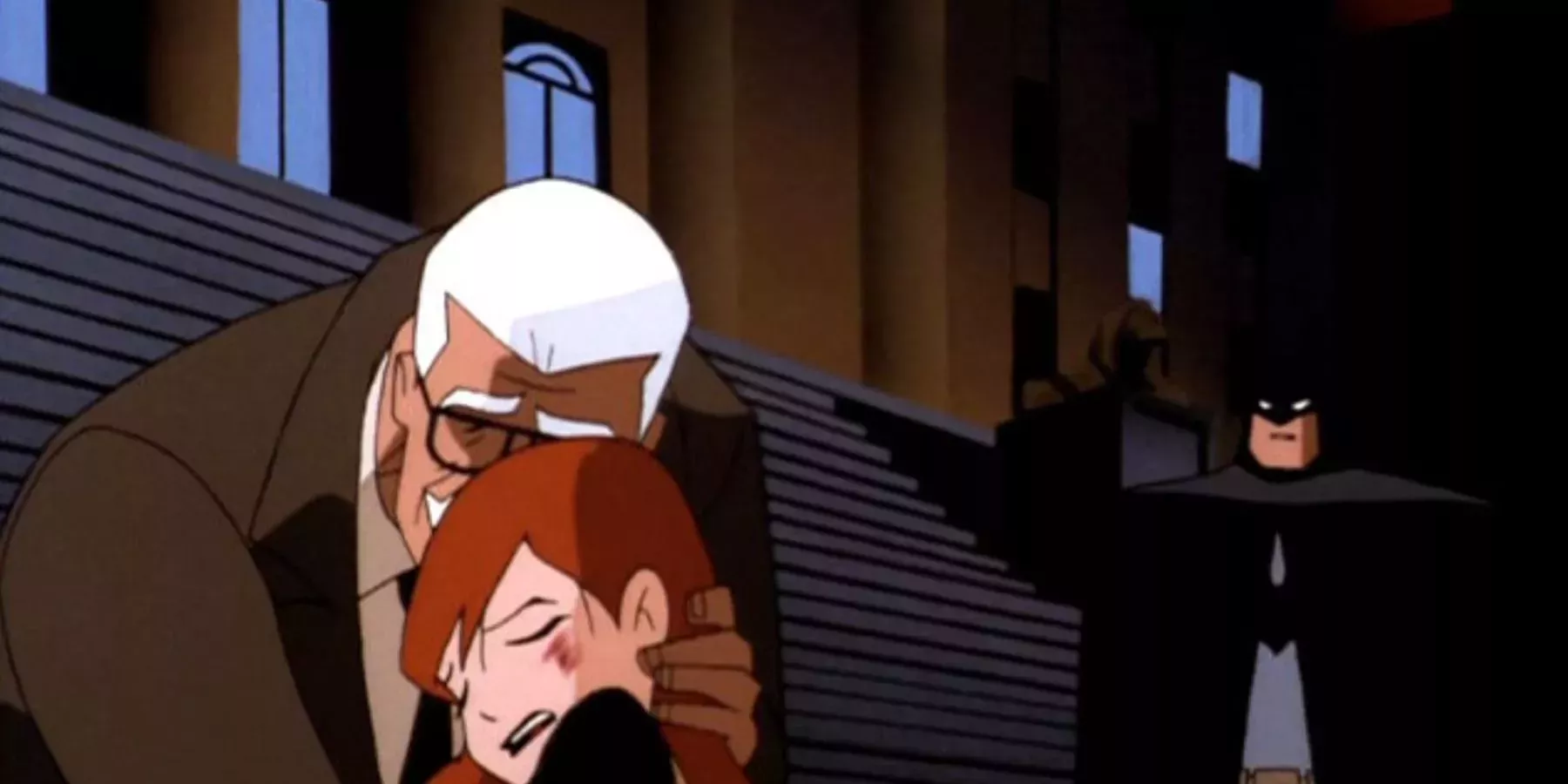 Un momento absolutamente devastador de la serie es cuando Batgirl es empujada desde un tejado y cae directamente sobre el coche del comisario Gordon. Es en este momento cuando su padre descubre que su hija es Batgirl, justo cuando muere en sus brazos.