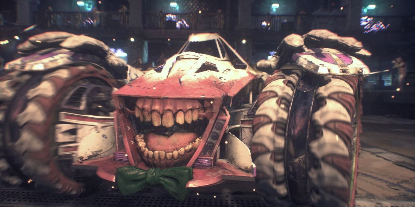 Batman tiene prisa por ayudar a su amigo y colega, y se sube a su nuevo Batmóvil (que Brian dijo que estaba basado en los coches de los años 40 y 50) para salvar a Gordon de las garras del Guasón en un parque de atracciones antes de que sea demasiado tarde.