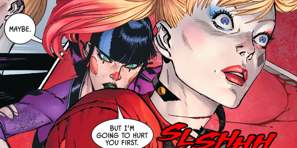 2 Cuando la garganta de Harley Quinn fue cortada por el remate