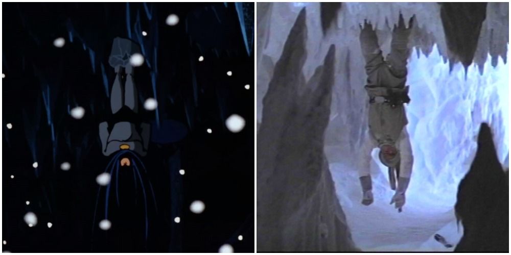 En un momento del episodio, Batman acude a la guarida de Frío para enfrentarse al Rey del Frío. Sin embargo, Frío sorprende al Caballero Oscuro y le congela los pies en el techo. Batman cuelga indefenso, en una escena que es una referencia inequívoca a la situación similar de Luke en El Imperio Contraataca.