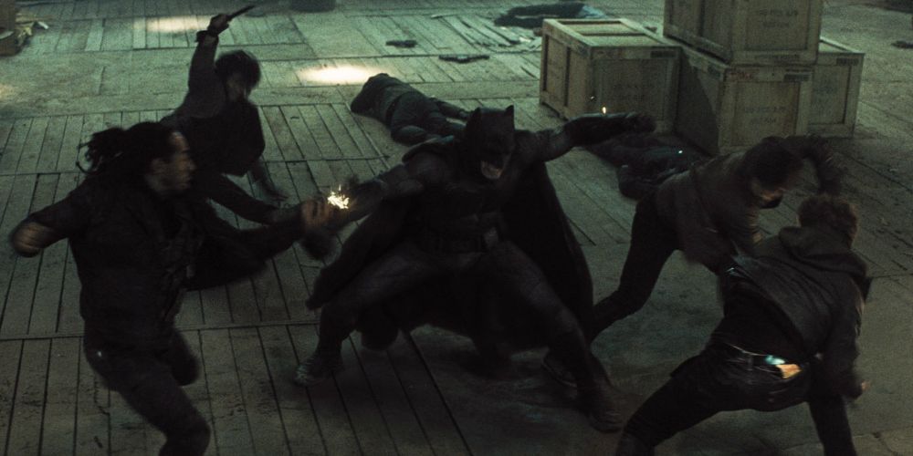 Con alguna desviación del control de Alfred sobre el Batwing y algunos de sus artilugios más extravagantes, Batman aturde y sorprende a un almacén lleno de criminales antes de eliminarlos brutalmente. Esta es una de las mejores escenas de lucha de la película y muestra realmente lo que Batman fue capaz de hacer en la DCEU.
