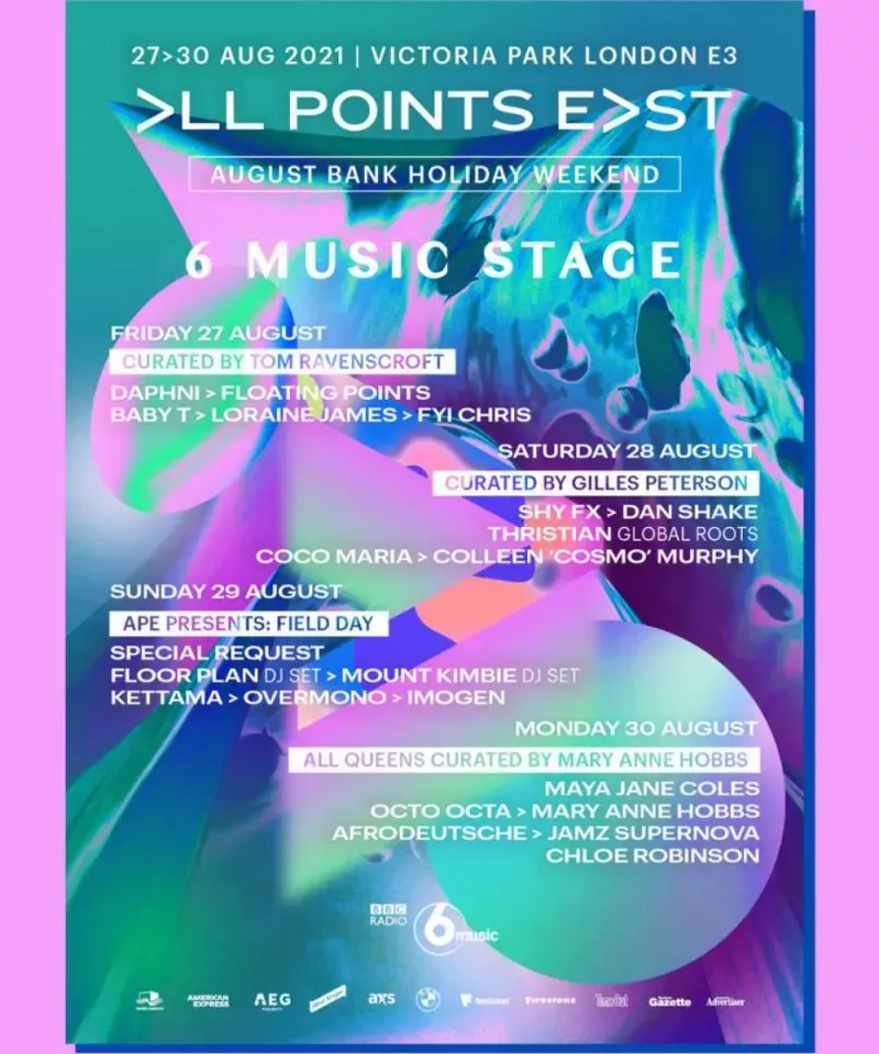 Peterson añadió que "es estupendo que vuelvan los festivales y poder reunir un cartel tan diverso para el escenario 6 Music en el APE", mientras que Hobbs dijo: "Es una gran alegrÃa presentar el cartel 'All Queens' en All Points East '21. Seis de las DJs femeninas más emocionantes, codo con codo, y tocando todo el rico espectro de la música electrónica".