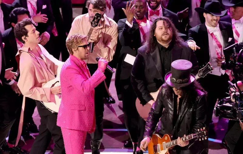 Una de las actuaciones más comentadas de la ceremonia fue la de Ryan Gosling, que -tras semanas de incertidumbre- interpretó la exitosa canción "I'm Just Ken" enfundado en un traje completamente rosa inspirado en Barbie.