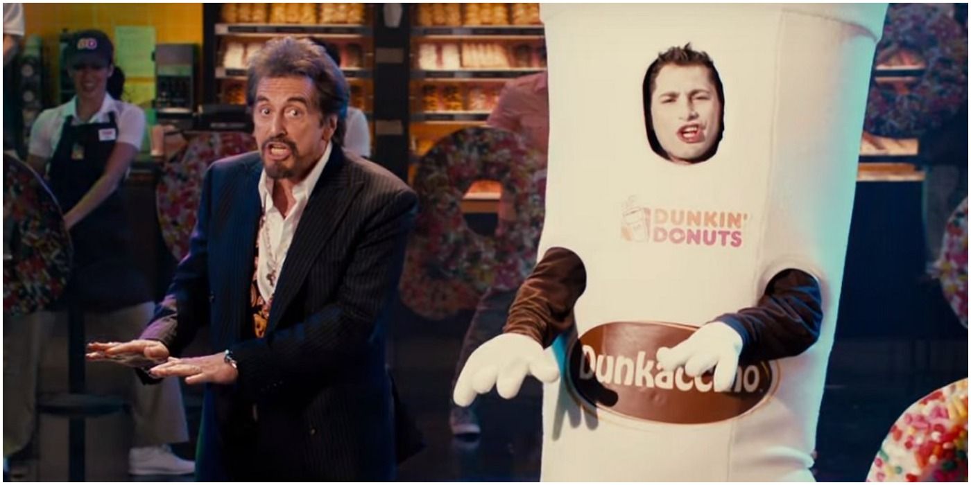 Al Pacino no sólo se burla de su propia imagen pública, sino que participa en una película tonta en la que se interpreta a sí mismo como un desventurado actor enamorado de Adam Sandler vestido de mujer, todo ello mientras canta en un anuncio igual de tonto de Dunkin' Donuts "Dunkaccino". Este es el mismo actor ganador del Oscar que participó en El Padrino, así que es refrescante verle tomarse un descanso de las películas más serias para reírse de sí mismo.