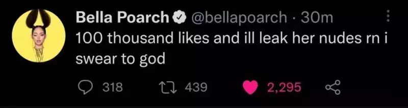 En otro tuit, la cuenta de Poarch amenazó con "filtrar los desnudos [de Cardi] rn" si recibía 100.000 likes.