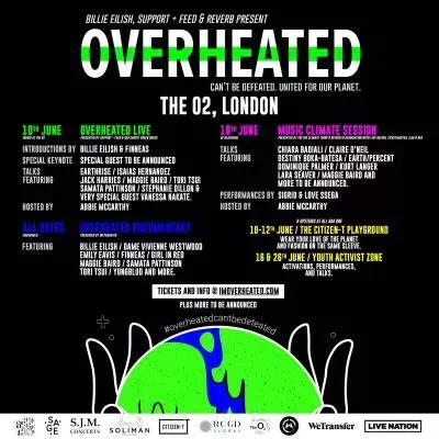 Eilish y su hermano y colaborador Finneas serán los encargados de presentar el evento el 10 de junio, mientras que también se confirmará un ponente especial. Sigrid actuará en directo durante la "Music Climate Session" de Overheated el 16 de junio.