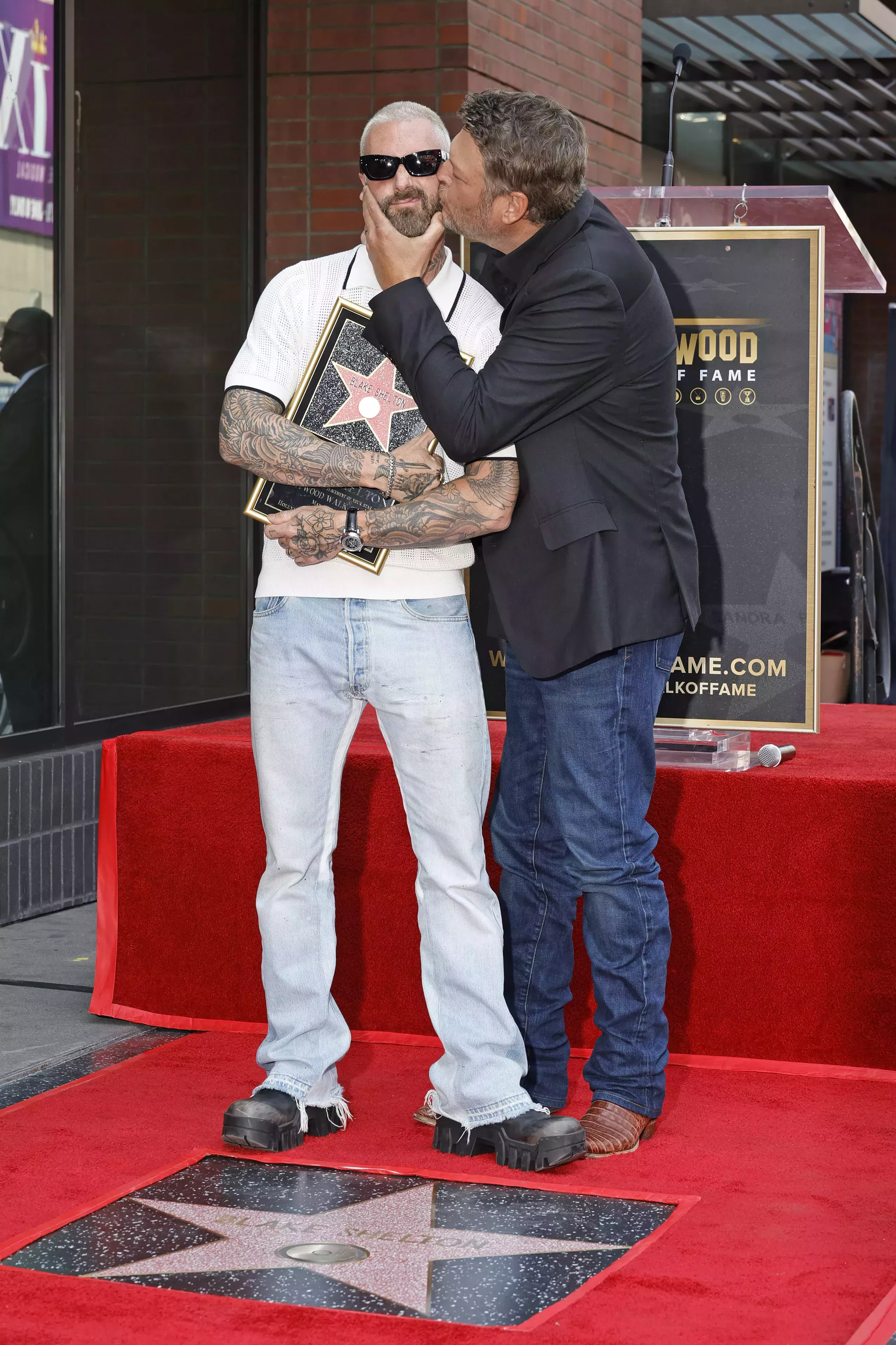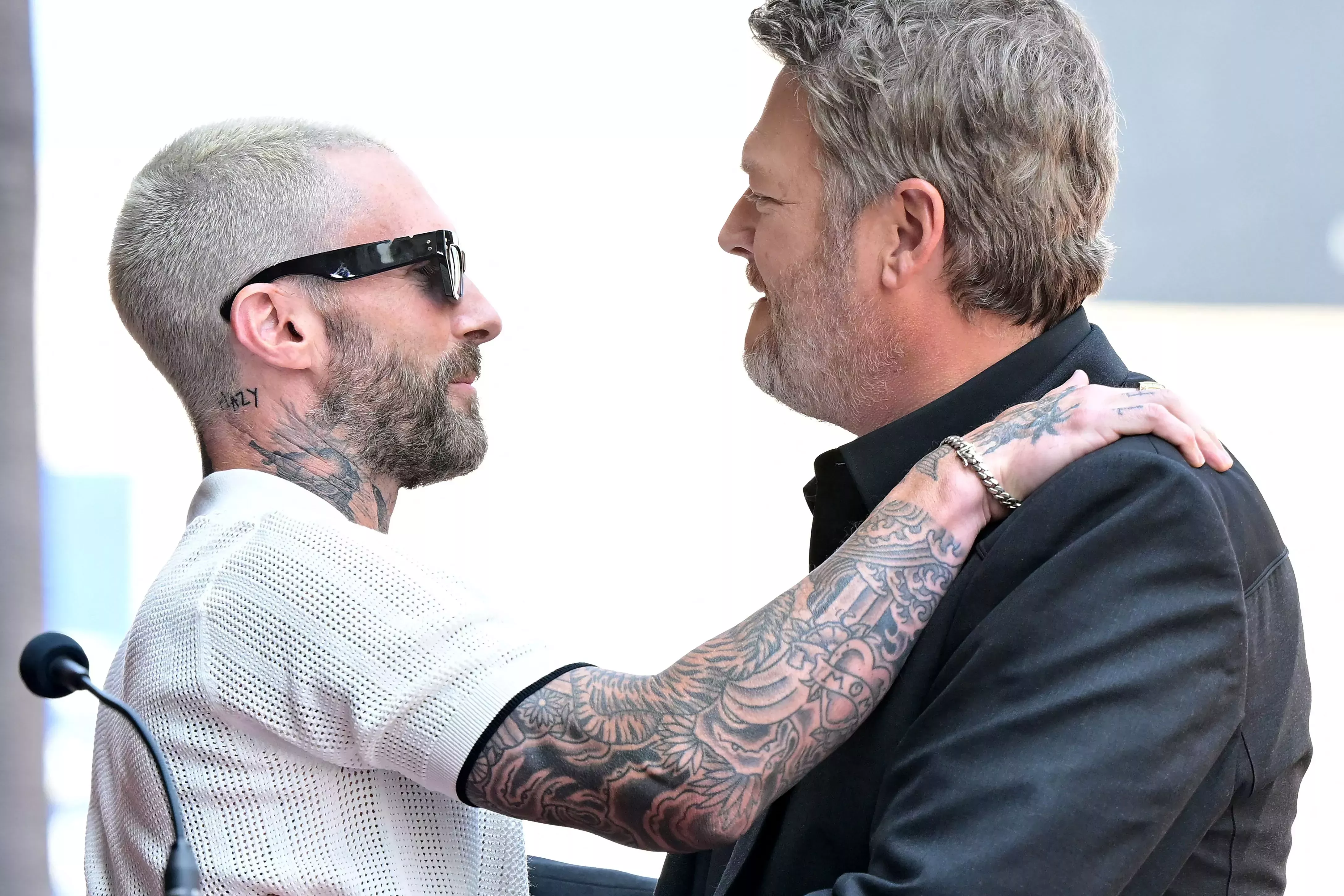 En la ceremonia de entrega de su estrella en el Paseo de la Fama de Hollywood, el viernes, Blake Shelton fue celebrado y avergonzado por tres invitados que han ocupado un lugar destacado en su vida durante los últimos doce años, mientras el presentador de "The Voice" Carson Daly lo asaba a conciencia, su esposa Gwen Stefani se mostraba enamorada (todavía) y su ex compañero Adam Levine dividía la diferencia.