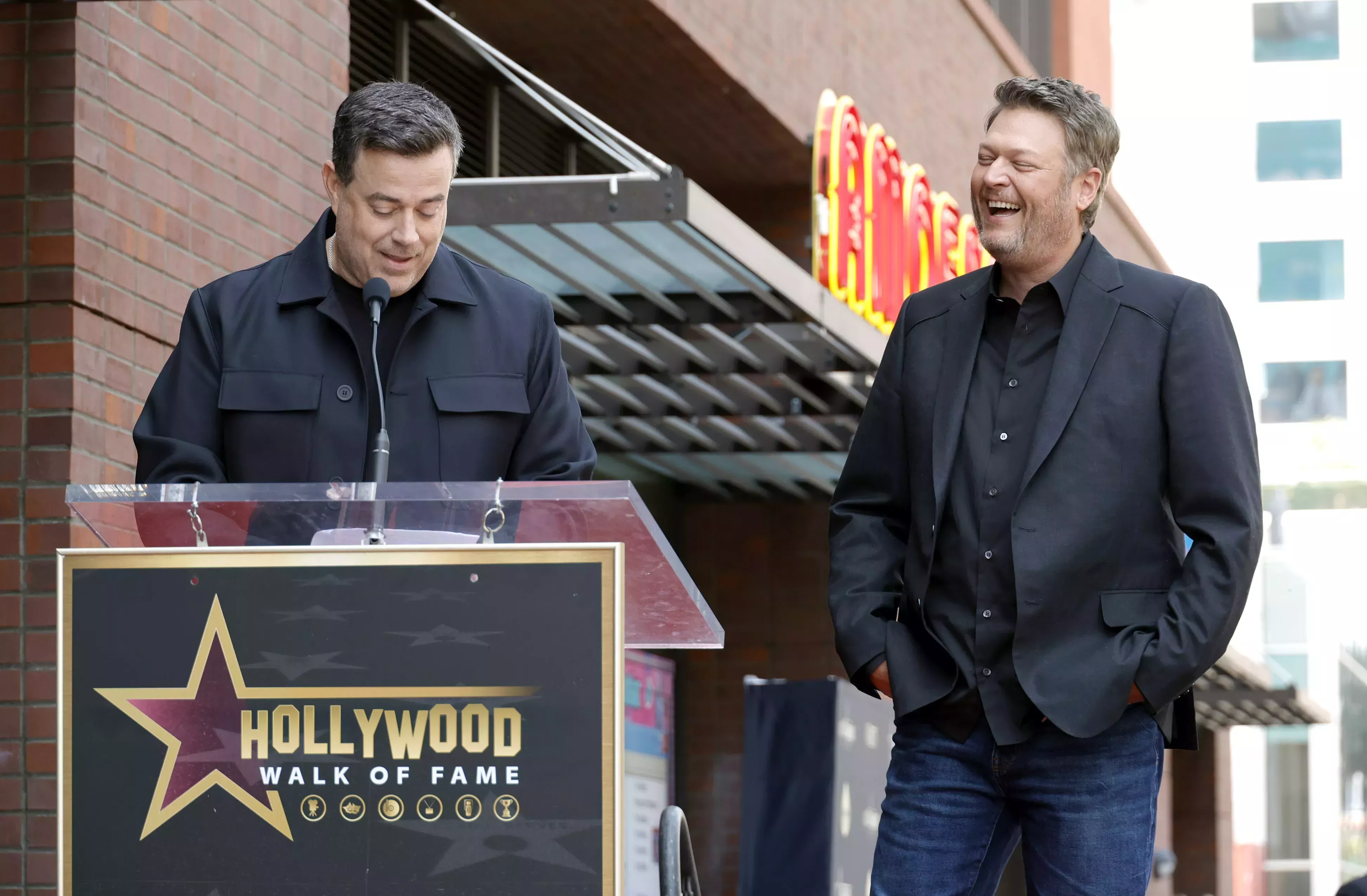 "Ha habido mucho brindis y poco asado. Estoy aquí para entregar a mi buen amigo Blake Shelton una estrella en el Paseo de la Fama de Hollywood. Lo cual es extraño porque Blake no vive aquí, ni siquiera le gusta estar aquí. Después de hoy, les aseguro que Blake no volverá a ver la estrella. De hecho, en cuanto se vaya, probablemente podríais desenterrarla y regalársela de nuevo a Blake Lively.
