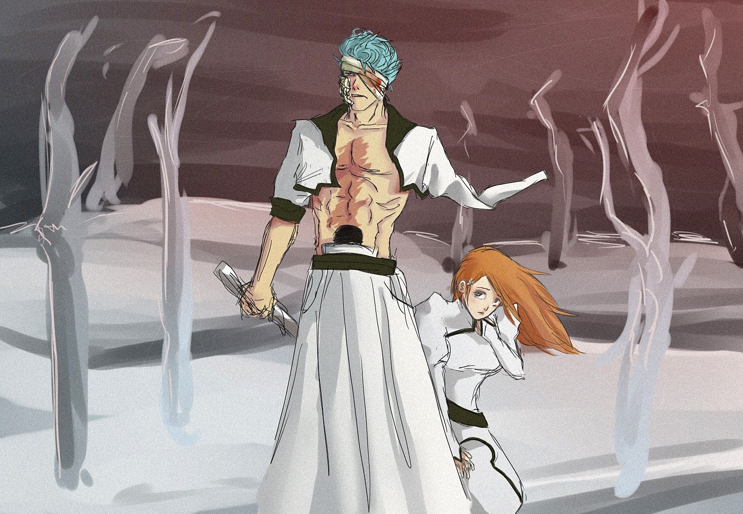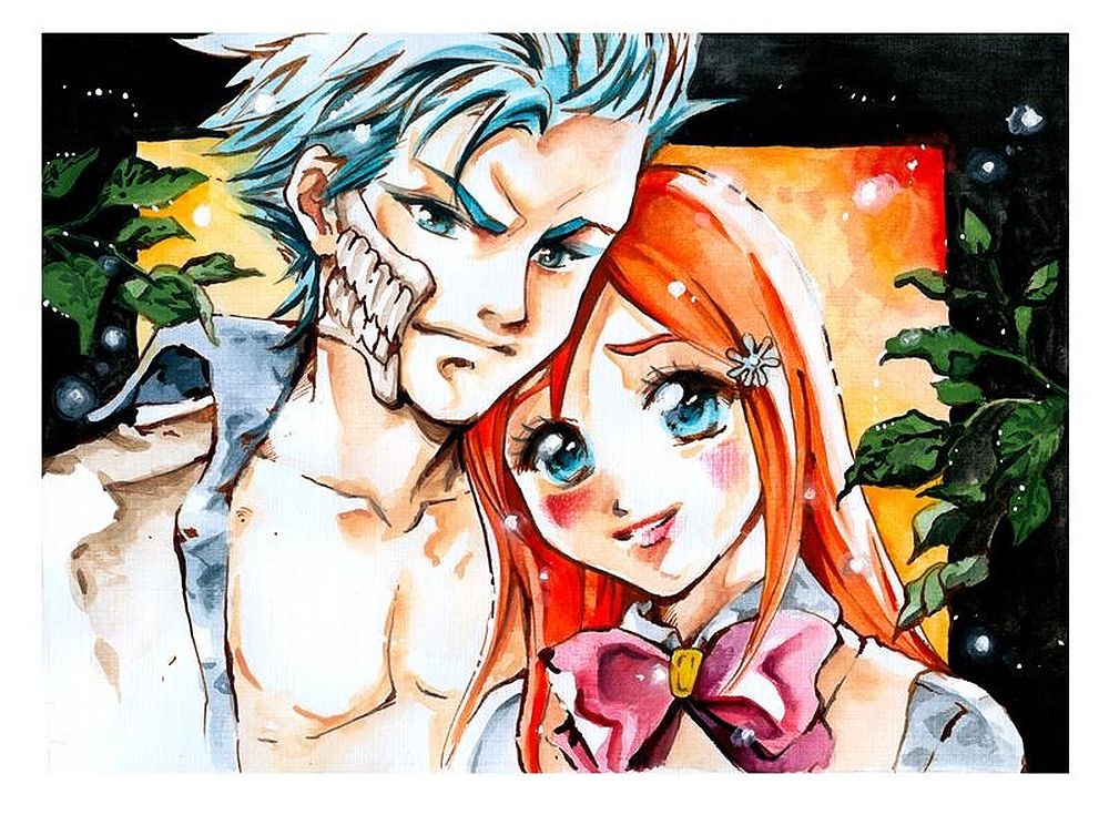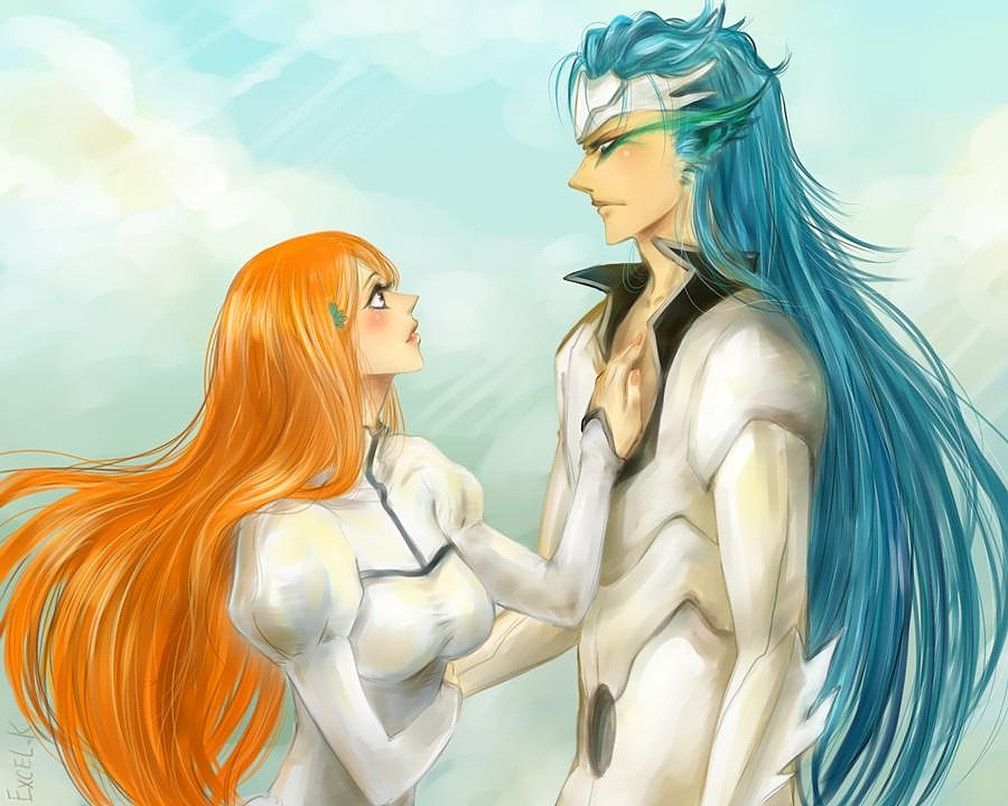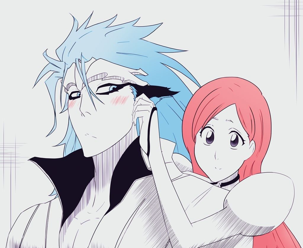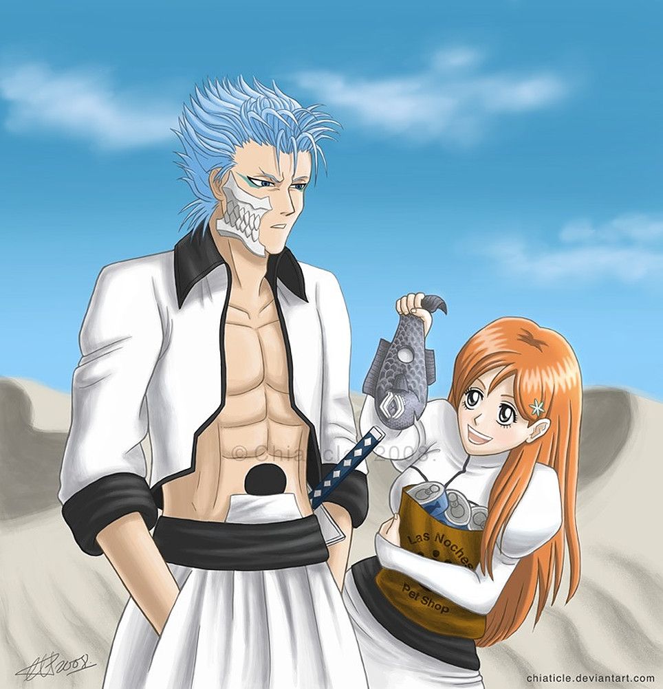 Cuando Orihime fue prisionera en la fortaleza de Hueco Mundo de Las Noches, fue atormentada por dos celosos Arrancars. Finalmente, Grimmjow salvó a Orihime para pagarle por la curación de su brazo. Orihime le siguió durante un tiempo e incluso curó a Ichigo para que Grimmjow pudiera tener una satisfactoria lucha final con él. A los fans les encanta imaginarse a Grimmjow y Orihime como una pareja más genuina, y aquí hay algo de arte de fans para demostrarlo.