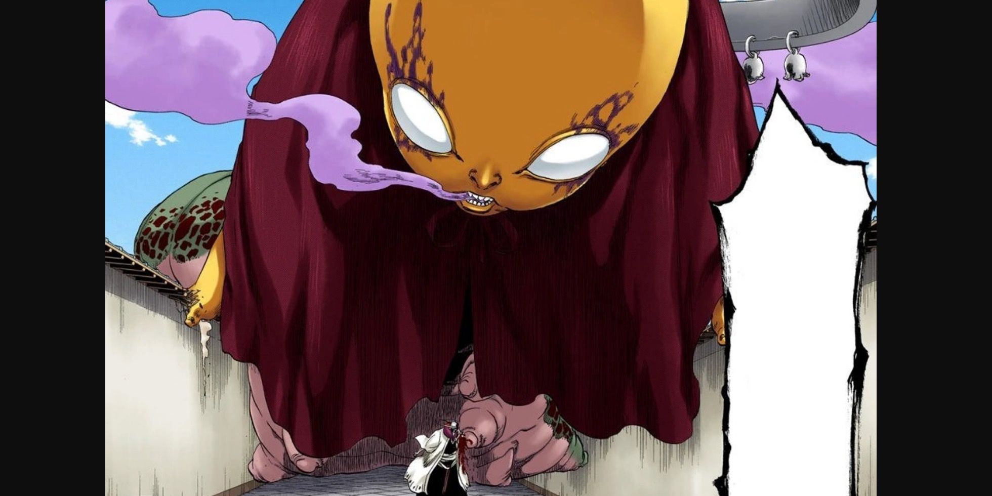 De hecho, el Shinigami saca su terrorÃfico bankai, el Konjiki Ashisogi Jizo, pero el gigantesco gusano-bebé lleno de venenos no consigue acabar con Uryu. Este es el mismo bankai capaz de derrotar a Szayelaporro Granz, el Espada que no es derrotado por los esfuerzos combinados de Renji y Uryu.