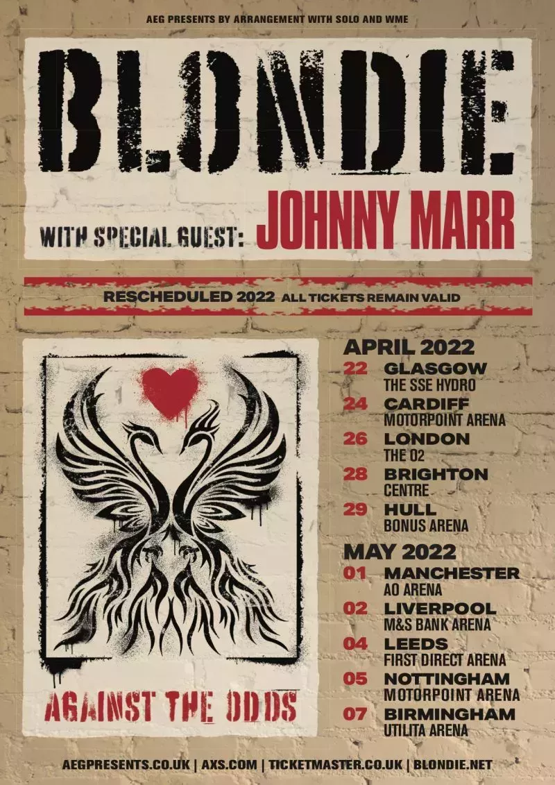 "Habiendo colaborado con Johnny en el último álbum de Blondie, y con planes para una nueva colaboración en nuestro próximo álbum, estamos deseando volver al Reino Unido, y mejor aún, compartir el escenario con la inspiradora influencia musical que es Johnny Marr", explicó Harry en un comunicado.