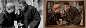 ¿Por qué? Según informa el New York Times, en la página de fans de Dylan 'Expectin Rain', alguien comenzó una discusión en la que comentaba el tremendo parecido entre fotos de Henri Cartier-Bresson, Dmitri Kessel y Léon Busy y algunos de los cuadros de Dylan. Quien dice parecido dice copia exacta, vamos. Tenéis una galería con los "plagios" aquí y una muestra a continuación: