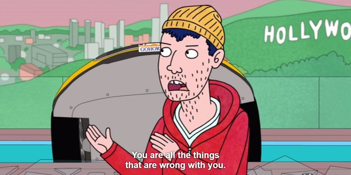 Todd,de Bojack Horseman, interpretado por Aaron Paul, es un personaje esencial a lo largo de la serie que normalmente tiende a mantener la calma. Si tiene algo serio que decir, lo que no es frecuente, suele ser importante. Puedes culpar a otras personas de muchas cosas a lo largo de tu vida, pero al final eres tú quien tiene que hacer el cambio.