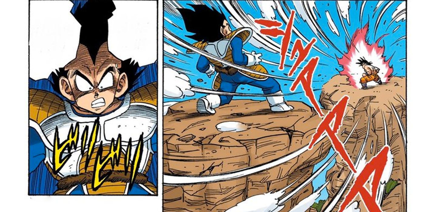 Aunque Goku es lo suficientemente fuerte como para someter a Nappa sin demasiado esfuerzo, Vegeta demuestra ser un enorme problema. Goku tiene que empujar a Kaioken a 4 para ganar su lucha de rayos con Vegeta. Donde esto deja a Goku completamente sin energía, Vegeta tiene más que suficiente Ki para hacer unas cuantas rondas más.