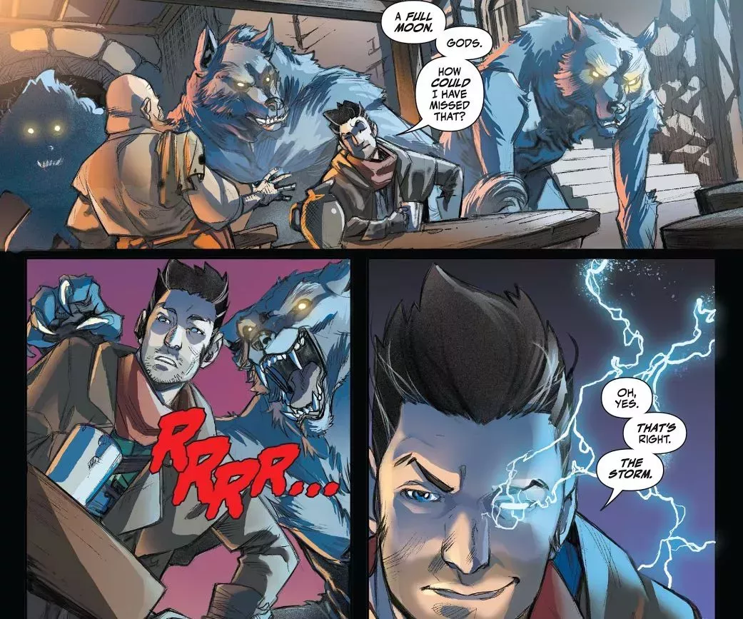 El productor, compositor y guionista Jed MacKay(Death of Doctor Strange) se embarca en un tipo diferente de aventura mágica en Magic Vol. 1, aportando su visión de la historia. La historia sigue de cerca a los tres Maestros del Gremio mientras se relacionan con un enemigo común mientras luchan contra hombres lobo, zombis y dinosaurios en cualquier reino al que les lleve el viaje. Aunque la narración parece larga a veces, sus numerosos giros mantienen al lector atado a sus asientos. MacKay teje una historia que toma personajes conocidos y estira sus relaciones establecidas hasta los límites de su imaginación, pintando un colorido mundo de Magic: The Gathering.
