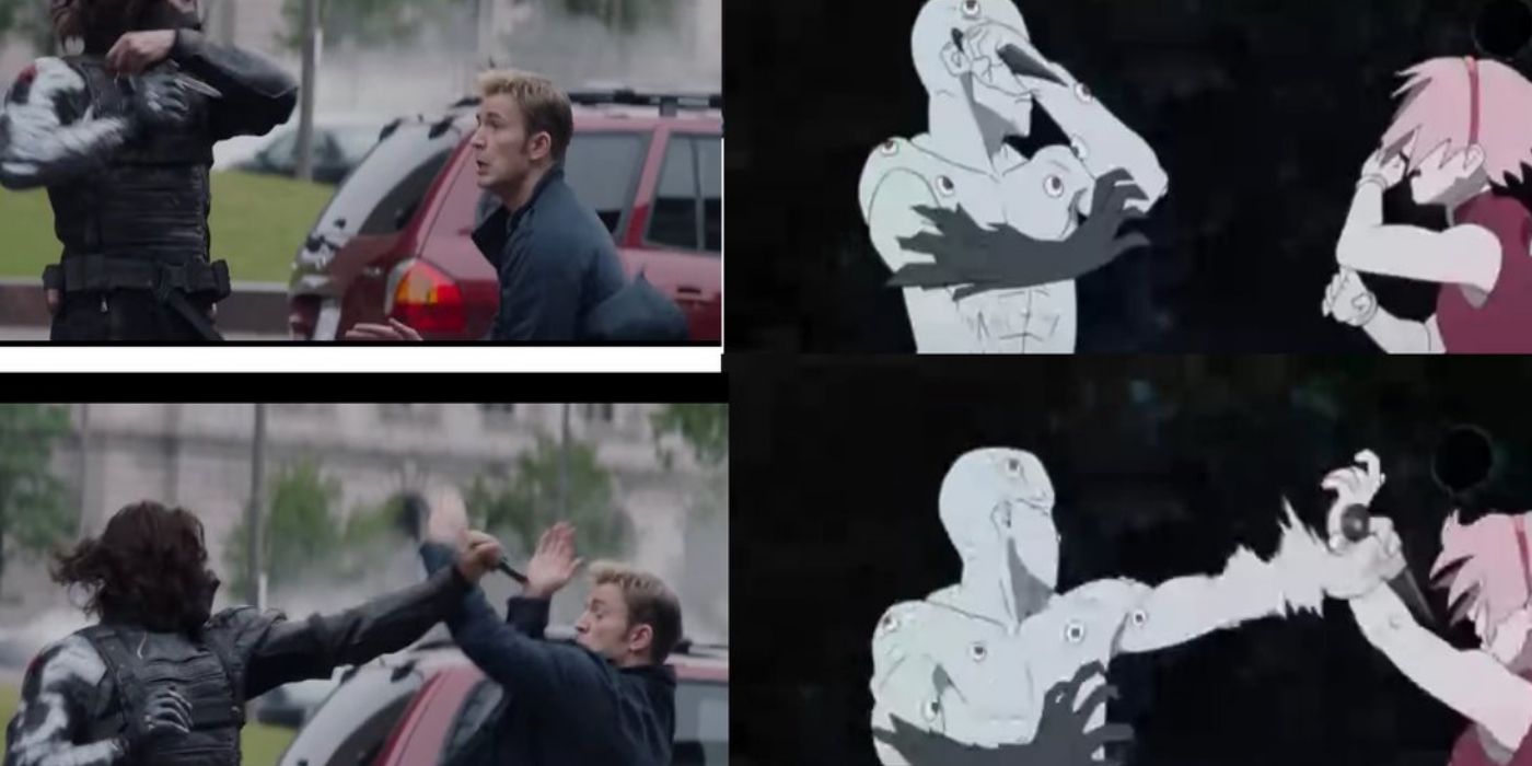 La batalla de Sakura contra Shin es casi una copia plano a plano y acción a acción de la batalla del Capitán América contra Bucky en Capitán América: El Soldado de Invierno.