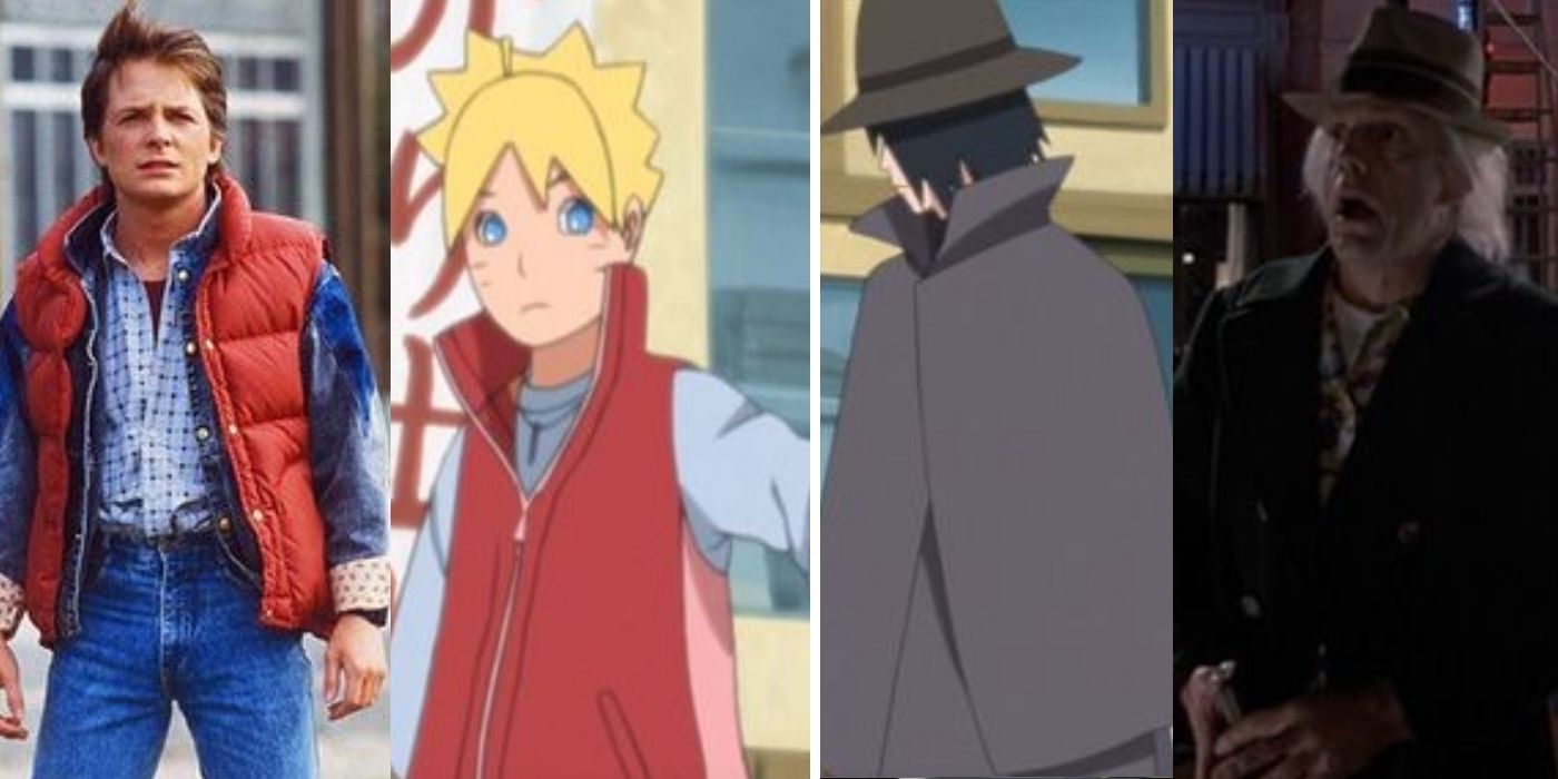 Durante el arco del viaje en el tiempo, Sasuke y Boruto llevan trajes que sirven de referencia directa a Marty McFly y Doc Brown de la serie Regreso al Futuro.