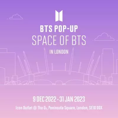 El 6 de diciembre, HYBE y la productora FreeCONG, con sede en Seúl, anunciaron que este viernes abrirán en Londres la primera tienda pop-up de BTS. Esta experiencia comercial, que tendrá lugar en el Icon Outlet de The O2, durará ocho semanas, hasta el 31 de enero.