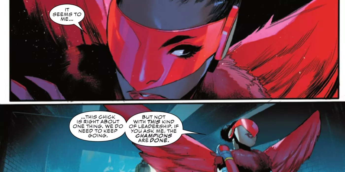 Starling, un héroe relativamente nuevo que ha tenido algunos roces con Spiderman, puede que se haya establecido para convertirse en un verdadero rival de Ms. Marvel por el liderazgo en los Campeones.