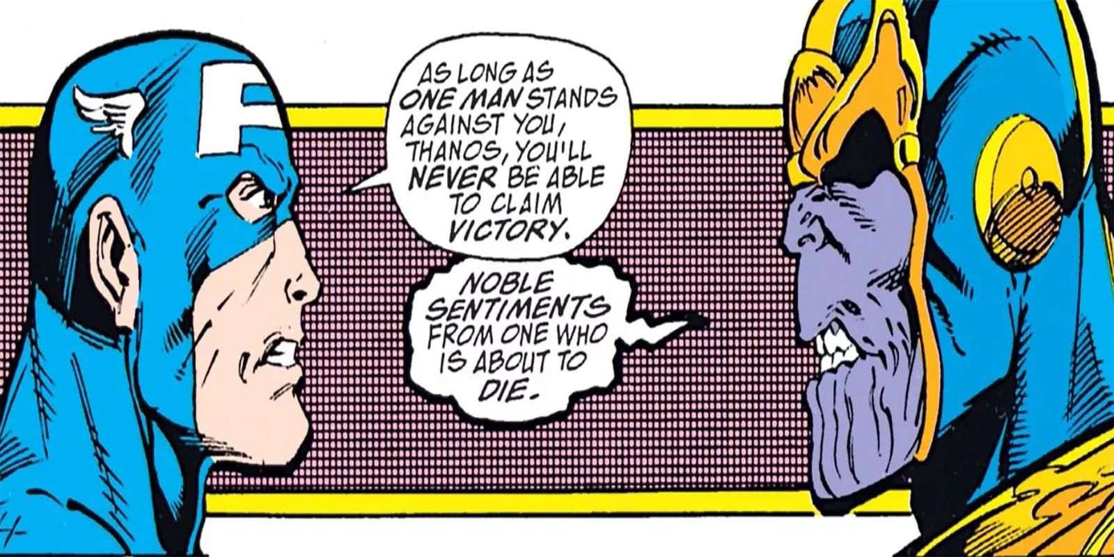 Este momento es uno de los más intensos de la historia, ya que se enfrentaron. Su batalla fue corta pero feroz; no había forma de que el Cap pudiera enfrentarse a Thanos y el Titán Loco mató al Cap con un golpe de revés. En cuanto a los momentos, fue uno de los mejores de la batalla, ya que el Capi demostró lo valiente que era y que, sin importar las probabilidades, nunca se acobarda.