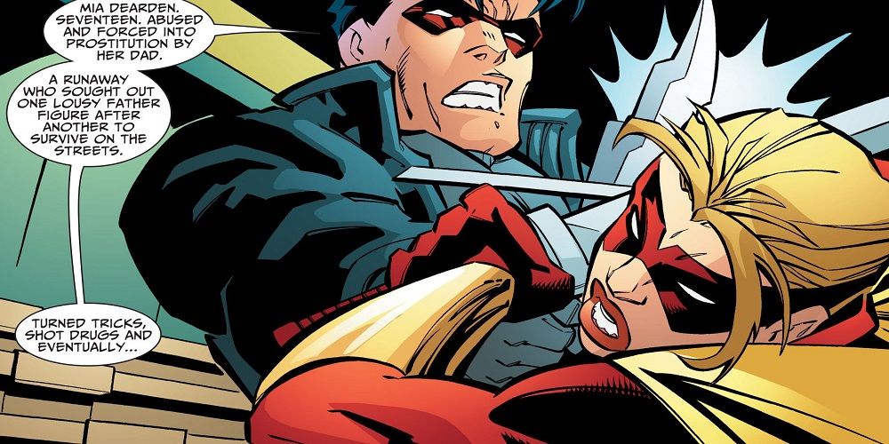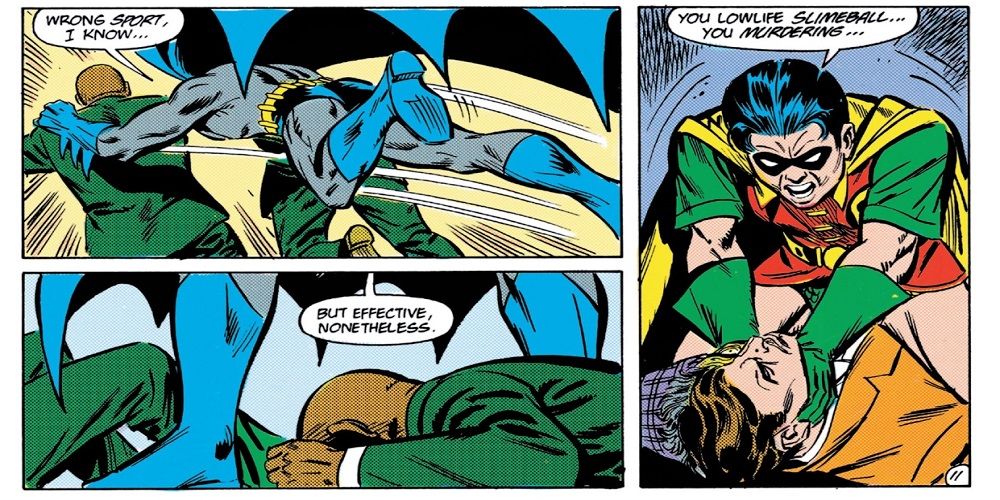 Todd también es descuidado y díscolo en su papel de Robin y eso perturba a Batman también. Utiliza una fuerza extrema en su trato con los criminales, hiere a gente inocente (que fue atrapada por los poderes de Hiedra Venenosa) y aplasta violentamente la cabeza de alguien en la puerta de un coche. La violencia es aterradora, gráfica y excesiva, y parece no tener control de los impulsos cuando lo hace.