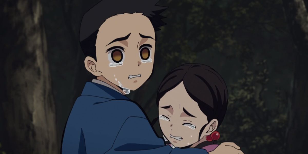 En el episodio 11, Tanjiro se encuentra con un dúo de hermanos que estaba asustado y llorando. Se enteró de que su hermano mayor había sido secuestrado por un demonio que vivía dentro de la casa.