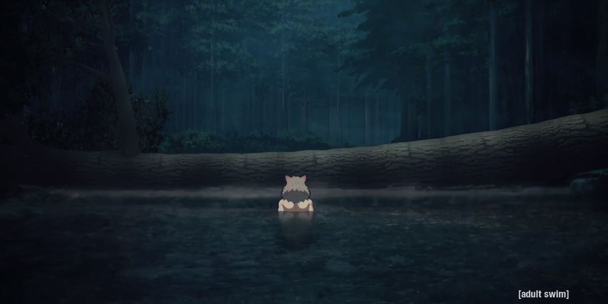 Inosuke había subestimado la fuerza y la resistencia del Padre Demonio Araña que había estado persiguiendo. Tanjiro vio esto e inmediatamente cortó el tronco de un gran árbol. Cayó sobre el demonio, dándole a Inosuke la mano que necesitaba.