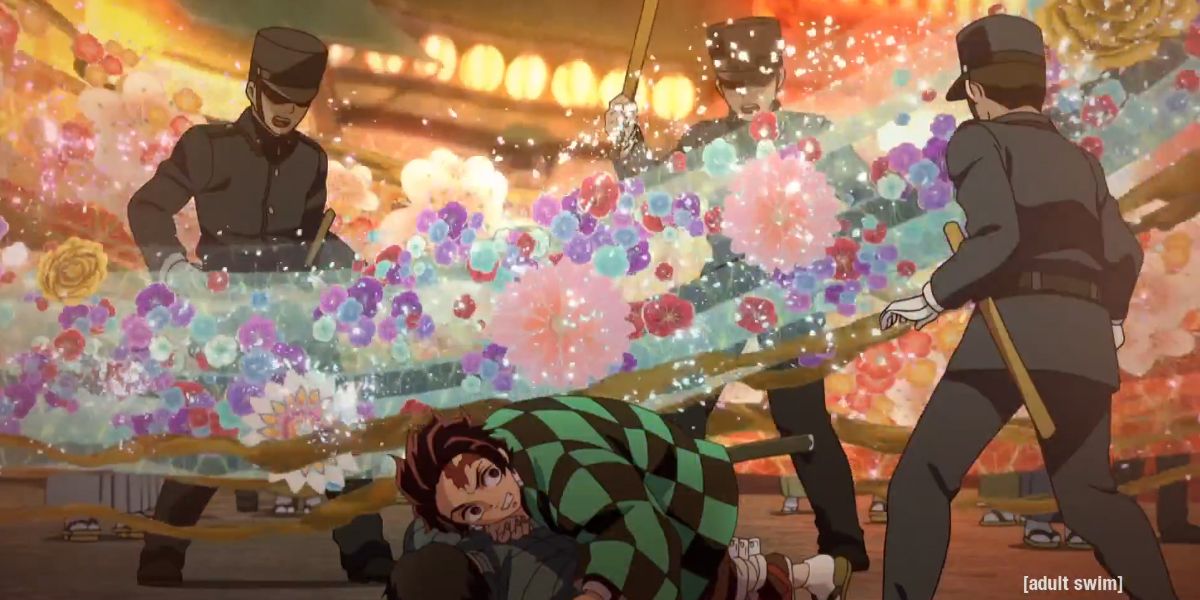 Tan pronto como Muzan convirtió a un inocente transeúnte en un demonio, Tanjiro se precipitó hacia él para controlarlo y salvar a la gente a su alrededor. Desafortunadamente, la policía apareció al mismo tiempo, y no quisieron escuchar a Tanjiro.