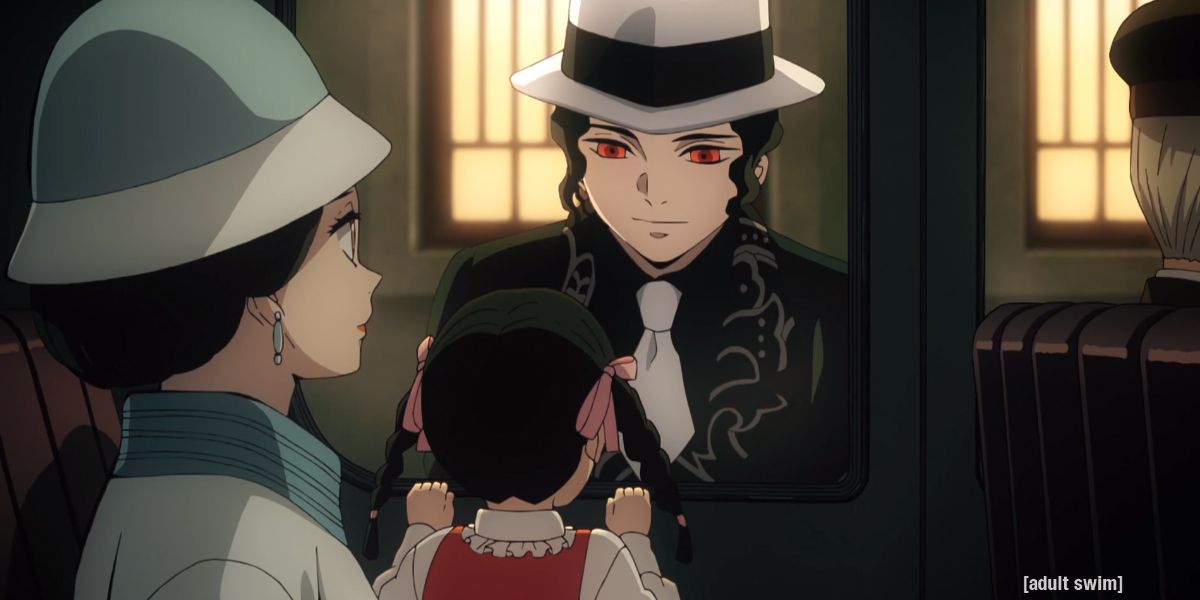 En el episodio en el que se presenta a Muzan, se puede ver cómo un borracho se burla de él. Al principio, Muzan lo ignora, pero cuando el hombre menciona que Muzan se ve pálido, algo dentro de él se rompe.
