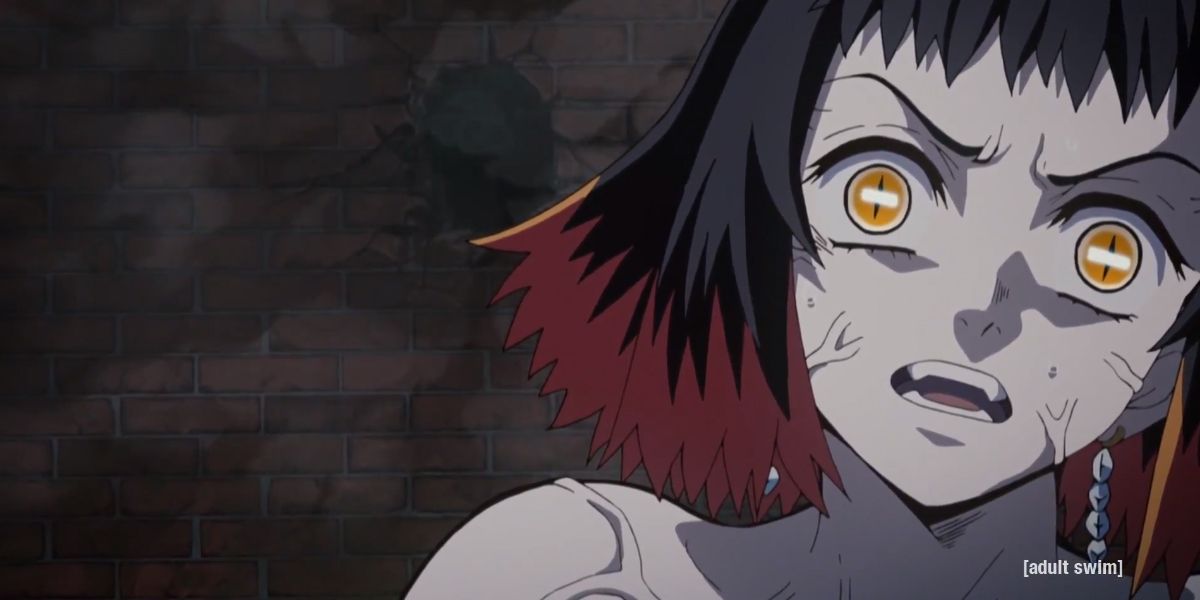 Cuando Tanjiro finalmente se enfrenta a Rui, el demonio usa sus hilos de acero para cortar el cuerpo de Tanjiro en pequeños pedazos. En el último segundo, Nezuko interviene y su cuerpo absorbe todas las heridas de ese ataque.
