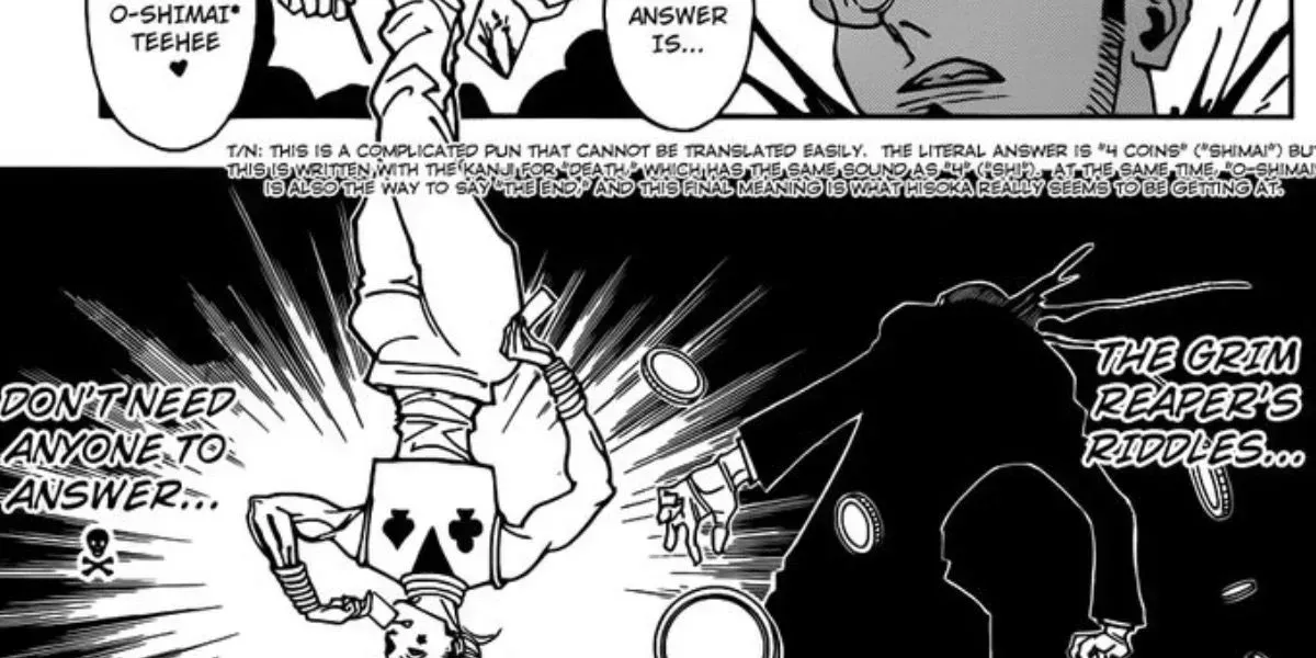 Esta cita de Hisoka es una adaptación del dicho popular: "La basura de uno es el tesoro de otro", y recuerda al público que un tesoro también puede convertirse en basura en un abrir y cerrar de ojos. Sólo alguien como Hisoka es capaz de hacer que una observación tan profunda suene irónica.