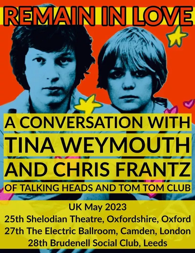 El baterista y el bajista, que también formaron la banda Tom Tom Club, hablarán de sus históricas carreras, de su matrimonio y de las aclamadas memorias de Frantz, también llamadas Remain in Love, durante tres entrevistas en directo en mayo de 2023.