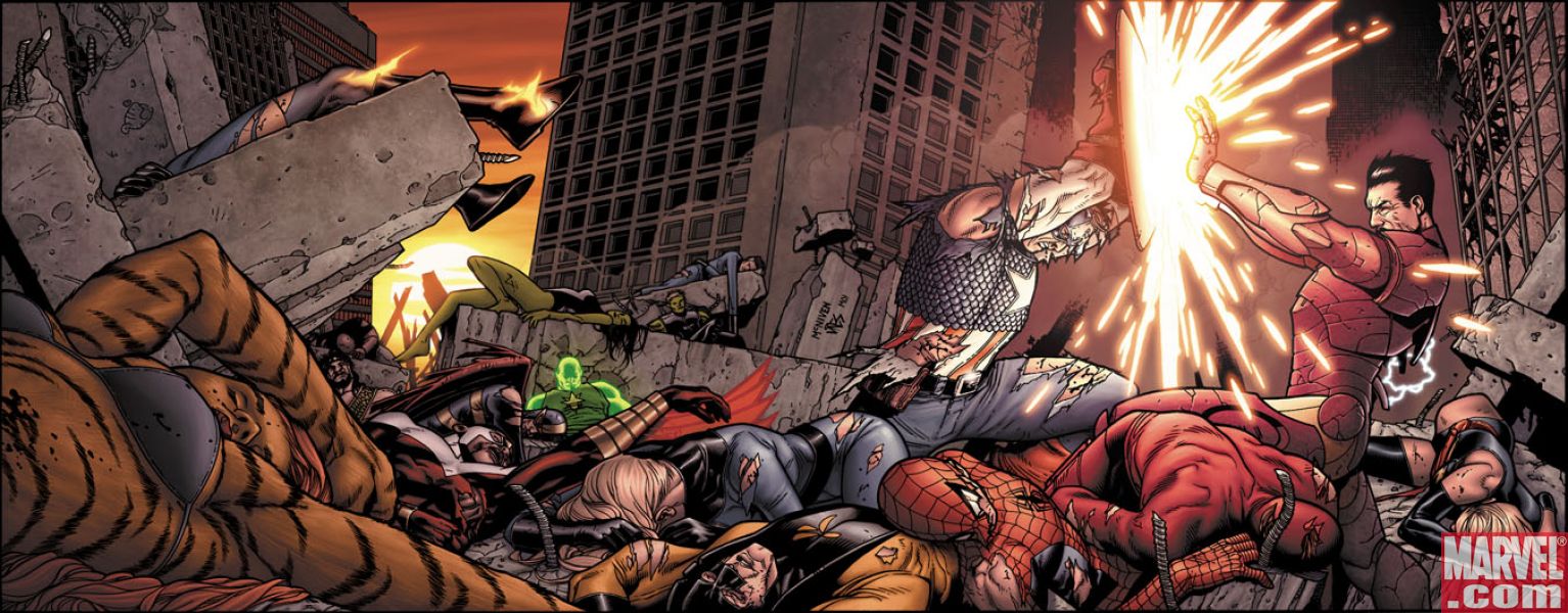 ‘Civil War’, el cómic, se publicó en 2006 como un evento llamado a cambiar el escenario de Marvel Comics. Escrito por el escocés Mark Millar y dibujado por Steve McNiven, el relato supuso un punto de inflexión para la editorial y sus personajes, vertebrando en rededor de la franquicia de los Vengadores todo el universo de ficción de Marvel. Era la gran reivindicación de los Héroes Más Poderosos de la Tierra después del relanzamiento a manos del guionista Brian Michael Bendis, consagrando su serie como nave insignia de la editorial y una de las publicaciones de referencia en el mercado del cómic norteamericano. La respuesta que se dio a la obra tanto por parte de los lectores como de la crítica motivó a que la editorial sobreexplotara esta fórmula de evento anual en los años consecutivos, ofreciendo en la mayoría de las ocasiones obras que carecían de la trascendencia de aquella ‘Civil War’. ‘Civil War’ fue, por tanto, un antes y un después a la hora de entender el mundo del cómic de superhéroes. Una nueva aproximación de Marvel Comics a la realidad con un evento que partía a una clara alegoría de la guerra contra el terrorismo y el Acta Patriótica estadounidense promulgada por George W. Bush (sí, amigos, si defendéis la postura de Iron Man estáis posesionándoos al lado de Bush).