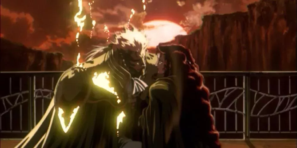 Meier Link es un vampiro de pura sangre, y se prende fuego al ponerse el sol intentando salvar a su amante humana, Charlotte, de que se la lleven contra su voluntad. Es una escena que realmente demuestra que no es un vampiro aburrido seduciendo y utilizando a una ingenua mujer humana. Charlotte y Meier Link harían cualquier cosa el uno por el otro: Charlotte renunciaría a su humanidad y Meier saludaría al sol por ella.
