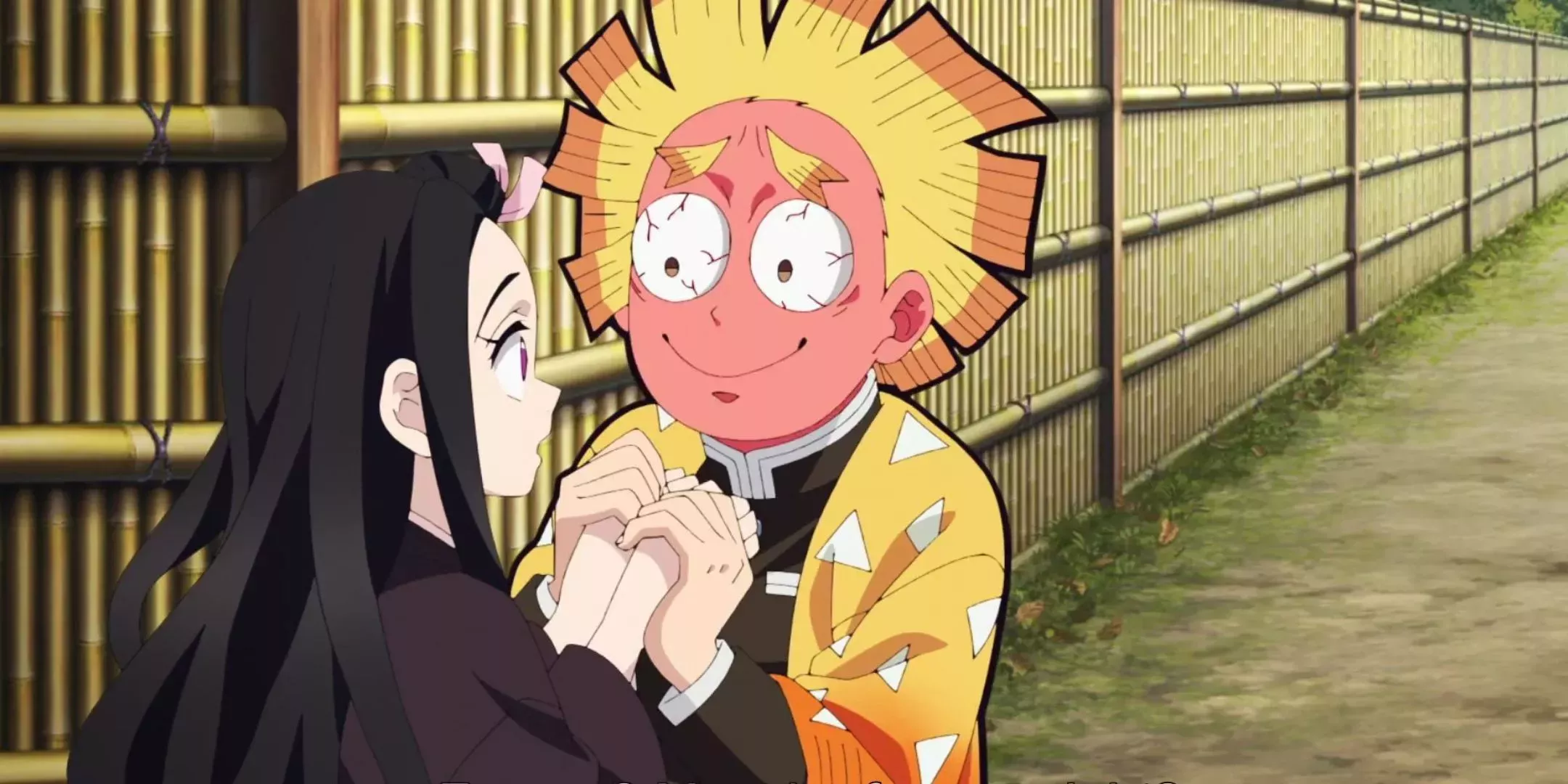 La reacción de Zenitsu cuando regresa al ala de recuperación y es recibido por una sonriente Nezuko en pleno día hace que el corazón de los espectadores se dispare. Y entonces el público recibe un golpe de hilaridad cuando Nezuko llama a Zenitsu por el nombre de Inosuke. La devastada reacción de Zenitsu, el olvido de Nezuko, la ignorante conversación de Tanjiro con Goto sobre cómo Inosuke enseñó a propósito a Nezuko sólo su nombre, y el hecho de que esta escena esté repleta de algunos de los personajes más populares de la serie hacen que toda la interacción sea francamente deliciosa de ver.